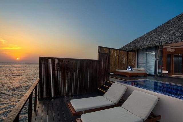24 Sunrise Water Villa (91 м2, макс. 2 чел.). Водные виллы c видом на рассвет. Ванная комната с джакузи, бассейн, терраса с прямым спуском в воду.