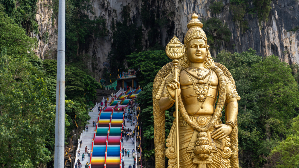 Далее мы отправимся в знаменитые пещеры в пригороде Куала Лумпура. Пещеры Бату – природная достопримечательность Малайзии –находятся в 13 километрах от Куала Лумпура. Это одна из самых популярных индуистских святынь за пределами Индии. Всего насчитывается два десятка пещер. На фоне величественных гор поражает воображение золотая статуя индуистского Бога Муругана –вечного борца за мир и справедливость.