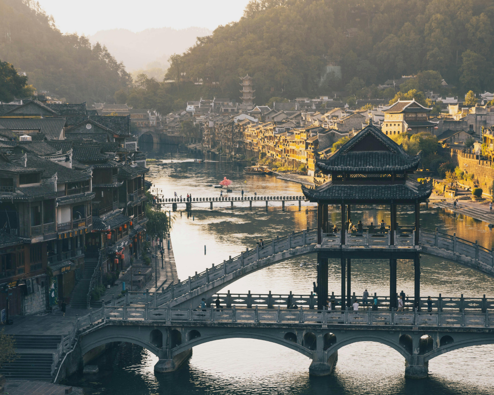 После завтрака — выезд в поселок Дэхан, где живёт народность мяо. Здесь можно увидеть традиционные костюмы, узнать о ремёслах и услышать старинные песни. После обеда — переезд в Фэнхуан, “город Феникса”. Этот старинный город, построенный на берегу реки Тоцзян, сохранил дух древнего Китая. Вечером — самостоятельная прогулка по старинным мостам и улочкам, где горят фонари, звучит музыка, а в прибрежных барах подают ароматный чай и рисовое вино.