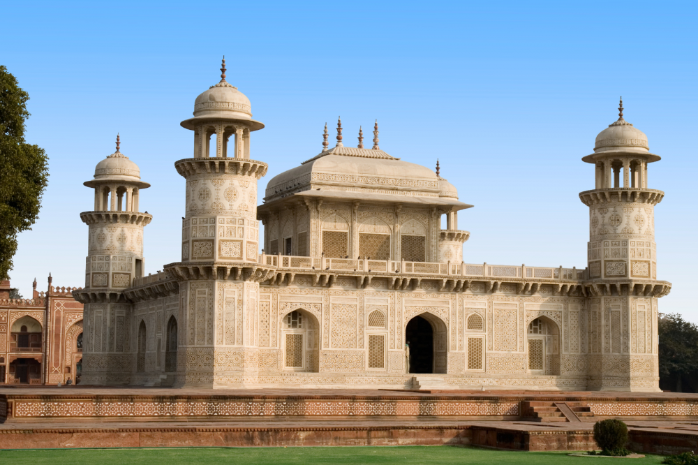 • Итмад уд Даула — изящная мраморная усыпальница, часто называемая «малым Тадж-Махалом».