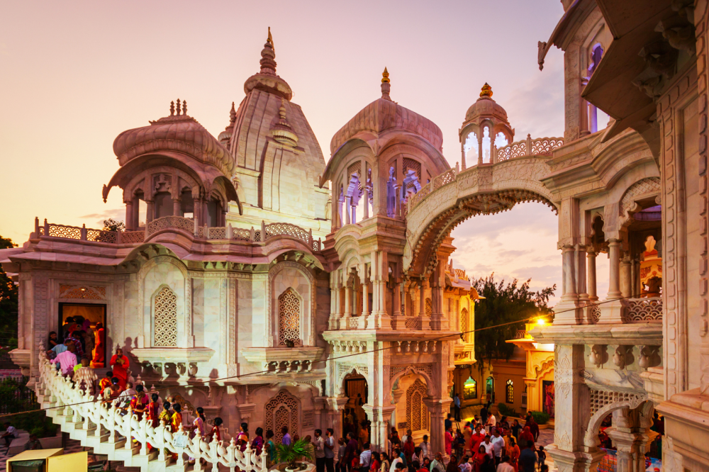 • Прем Мандир — ослепительно белый храм, особенно впечатляющий в вечерней подсветке.